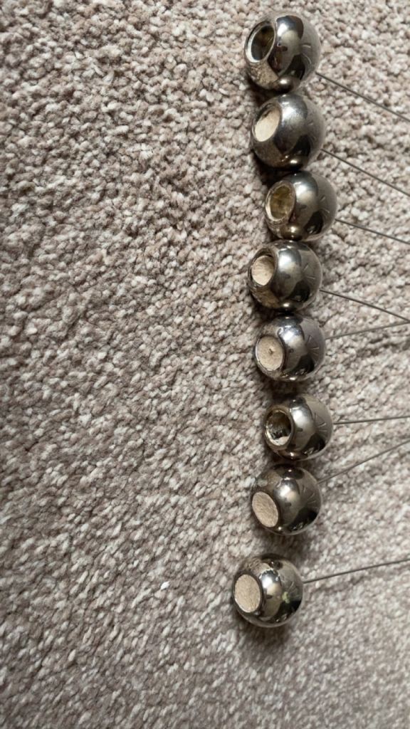 9 stands, did buy second hand. I didn’t use them though. Stainless steel, they do need a polish.