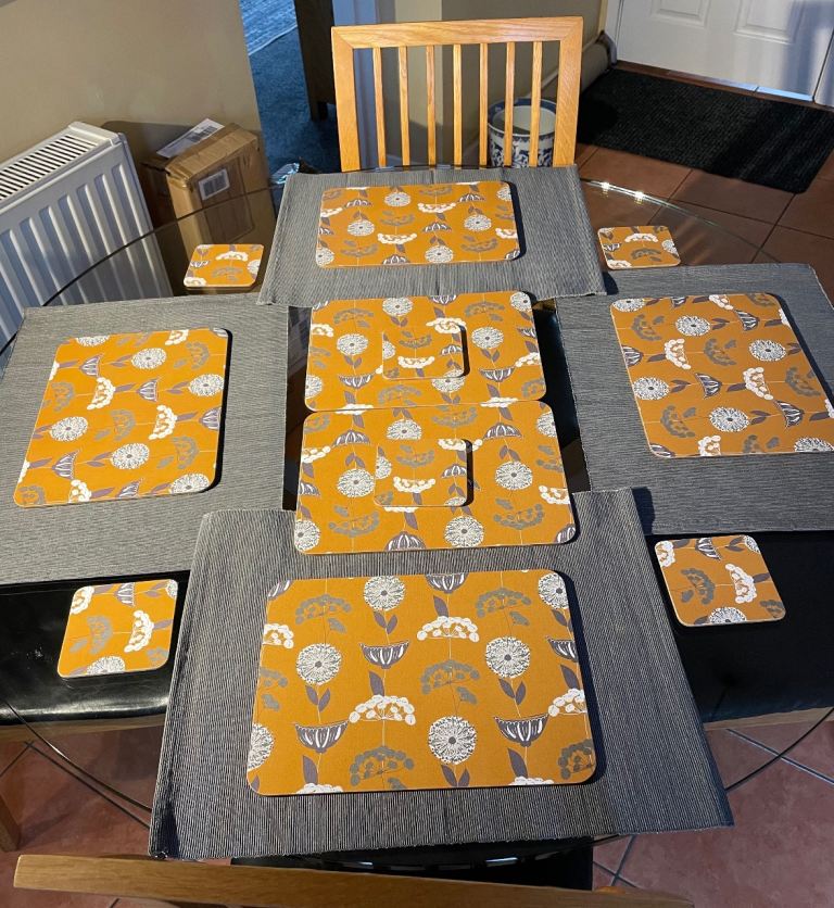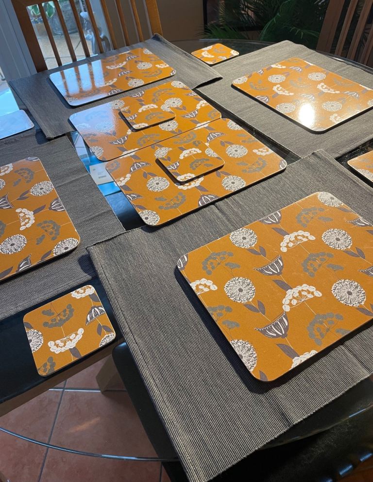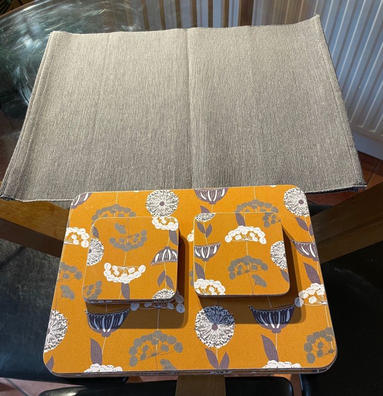 Set of six table mats & coasters, together with four washable under mats, originally purchased from Dunelm.