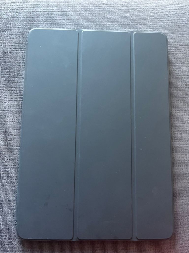 Comes with a grey protective case, showing some minor wear on the iPad's body.