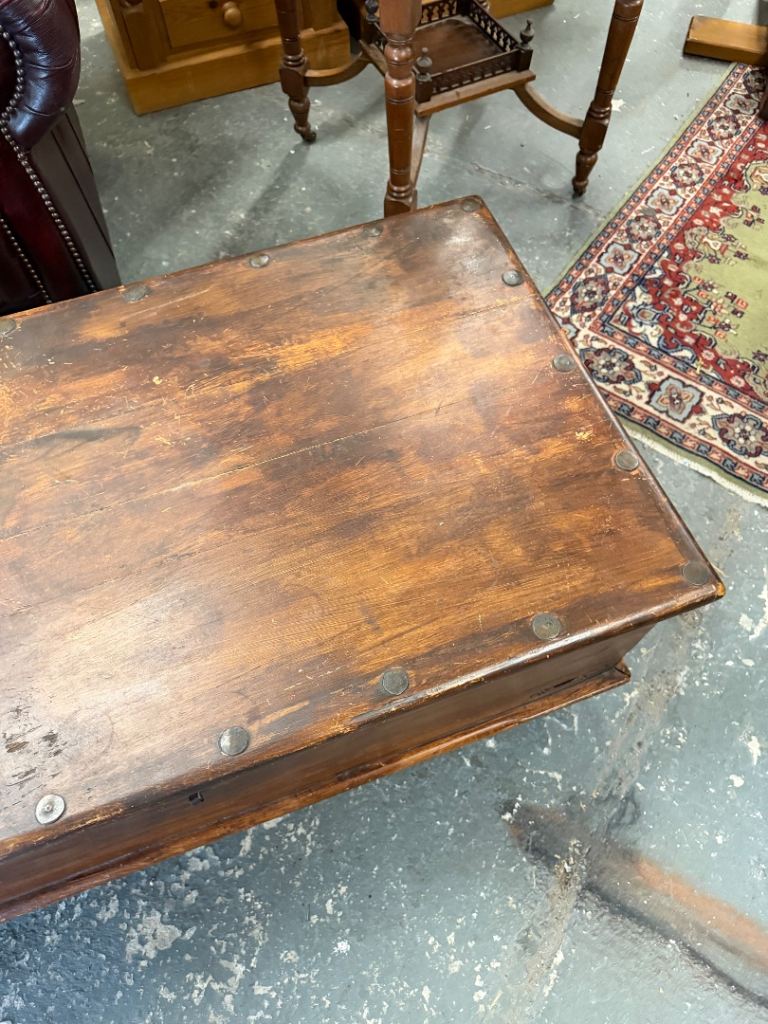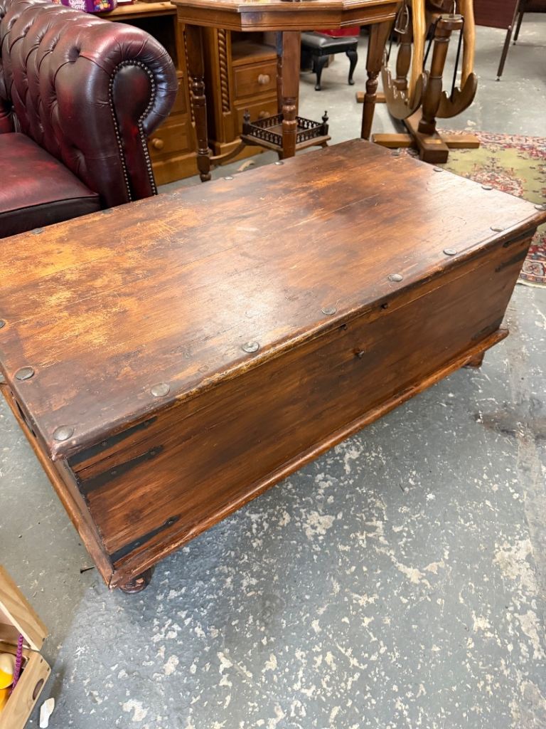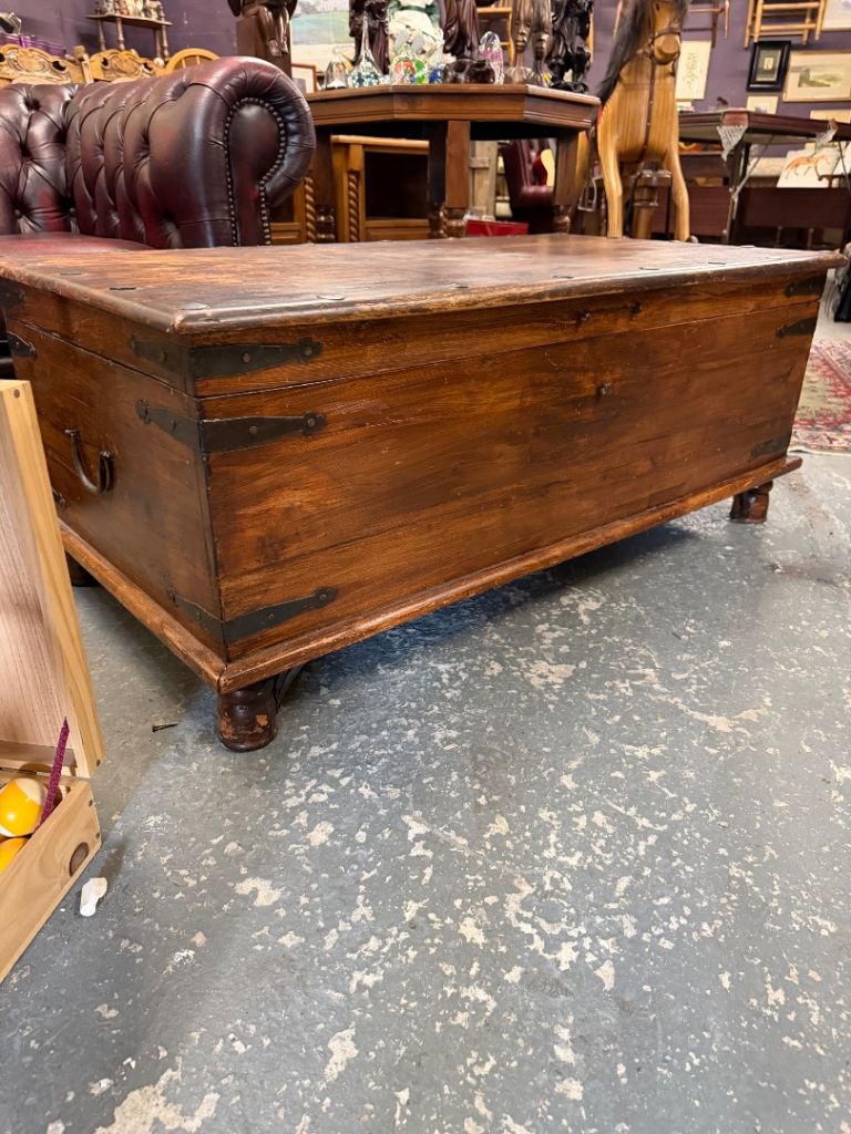Antique Style Solid Wood Trunk / Coffee Table Chest – Iron Strapped