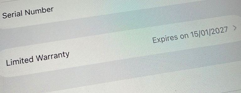 • separate apple manufacturing warranty until 15/01/2027 - pictured screenshot from device