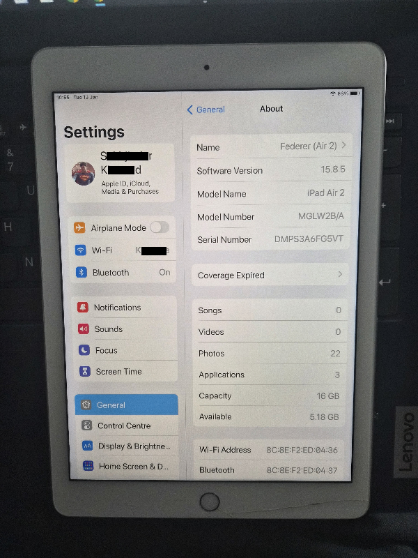 Apple iPad Air 2 – White frame/Silver Back – £30