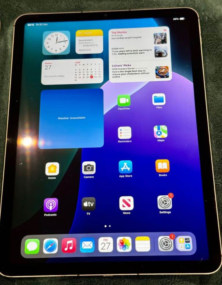 Apple iPad Air (5th Gen) 10.9” Wi-Fi + Cellular 64GB, keyboard case and pencil. IOS 26.3.1 installed