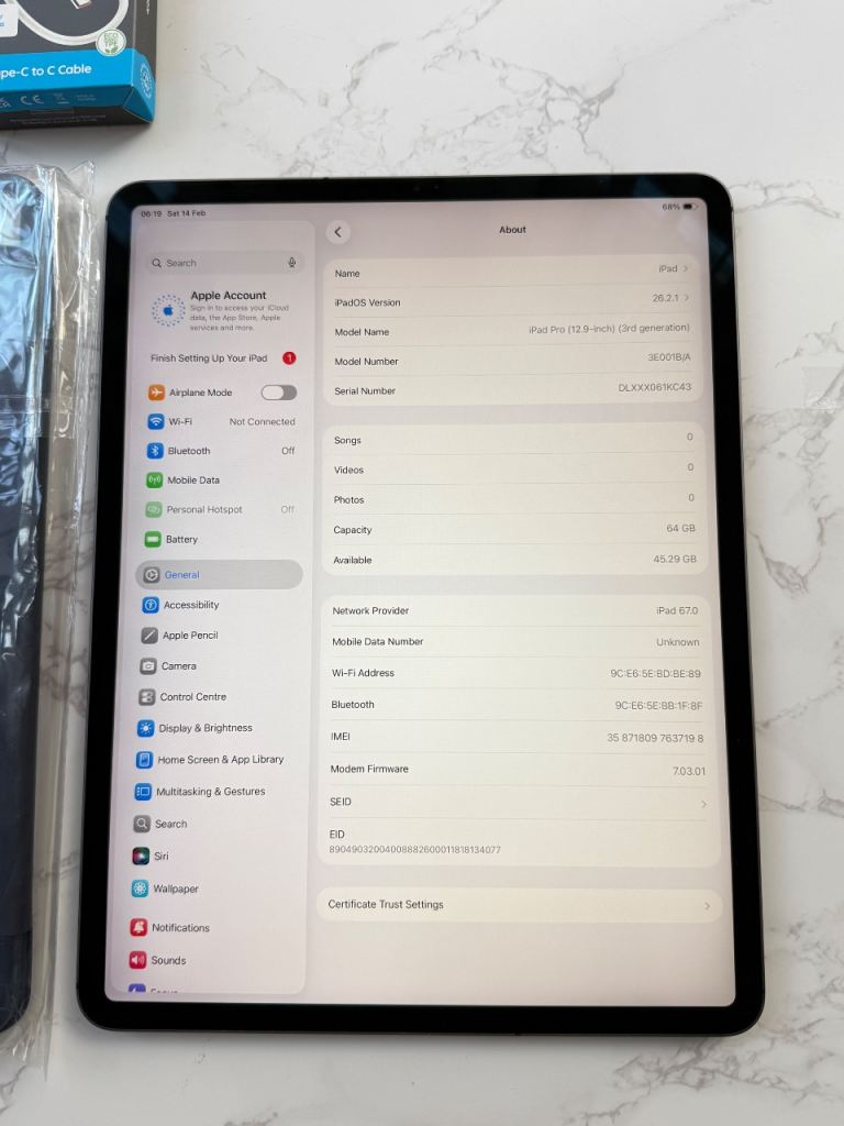 📲 Apple iPad Pro 12.9” (3rd Gen) – 64GB- Wi-Fi & Cellular- Space grey