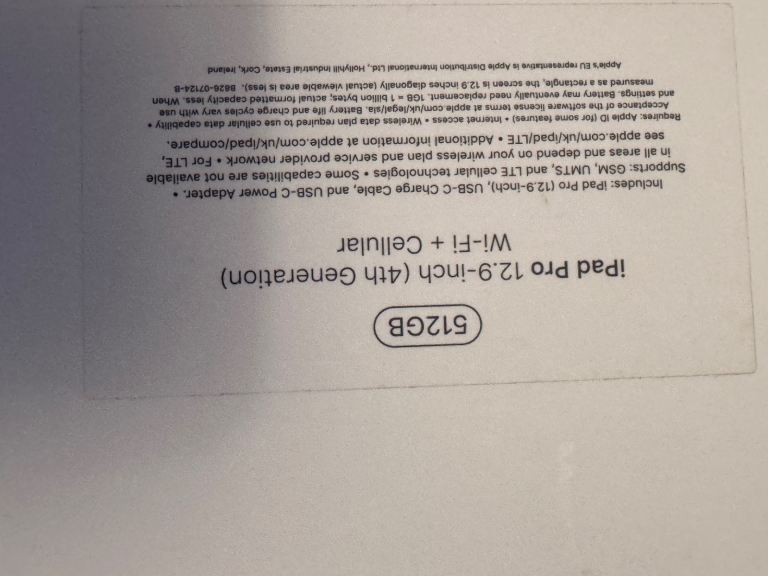 iPad Pro 12.9-inch (4th Gen) – WiFi + Cellular (Unlocked) no longer needed as have MacBook