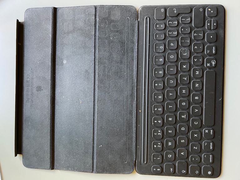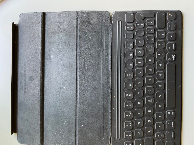 The iPad is in generally excellent condition with no obvious scratches to the screen or case. Exception is some marking near the keyboard connector, a previous keyboard had worn fabric causing scratching. The Apple Keyboard and back cover protect the iPad when not in use.