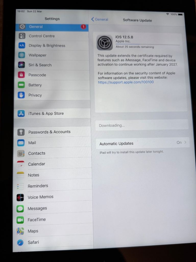9.7-inch screen size and Wi-Fi internet connectivity. Charging wire not included (lightning needed). Software no longer updates.