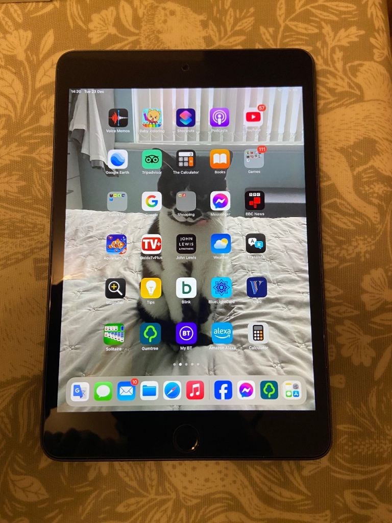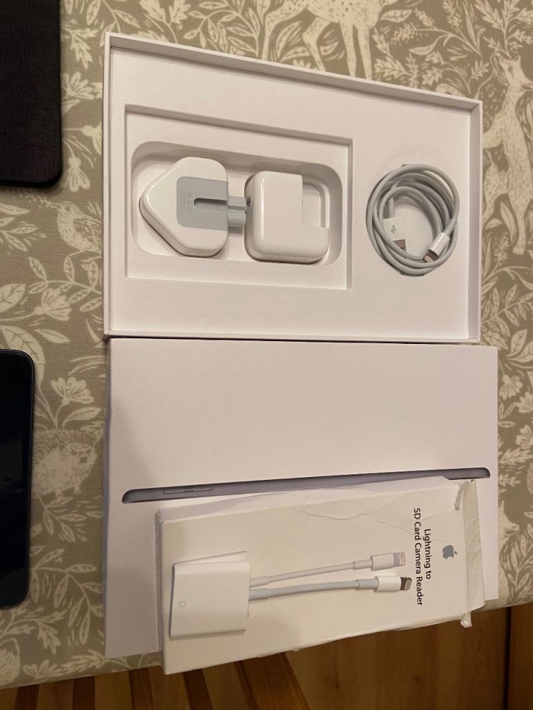Excellent condition unmarked IPad Mini 5. Comes with box, charger and lead. Also comes with an Apple Lightning SD Card Camera reader. Battery life is excellent. No marks on screen as fitted with screen protector. Will supply folio case with it.