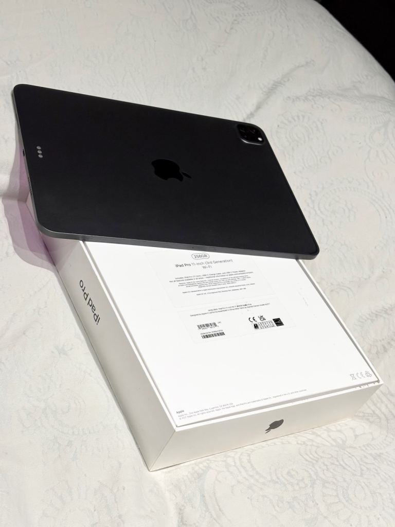 IPAD PRO 11 INCH 3RD GEN 256GB WIFI, BOX,CASE,M1 CHIP, SMALL CRACK BOTTOM CORNER,HARDLY NOTICEABLE