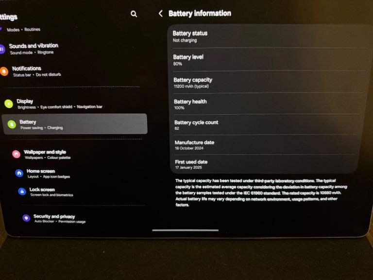 Battery health is at 100% , comes with the folding case and the genuine s pen.