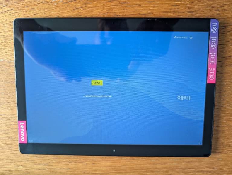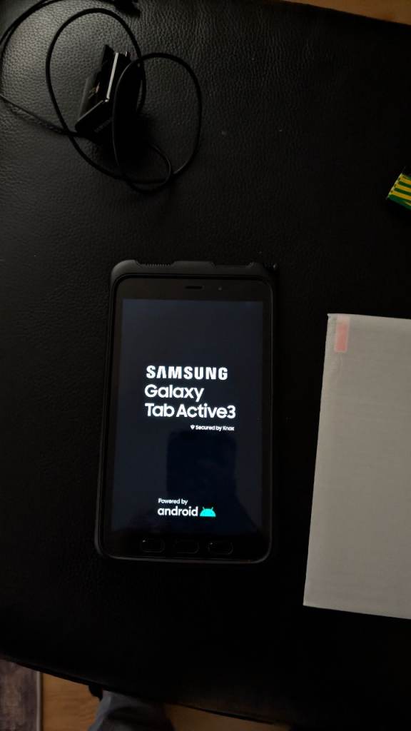 Samsung galaxy tab , thin crack on screen but in perfect working order. Do not have original charger but is charger by c cable