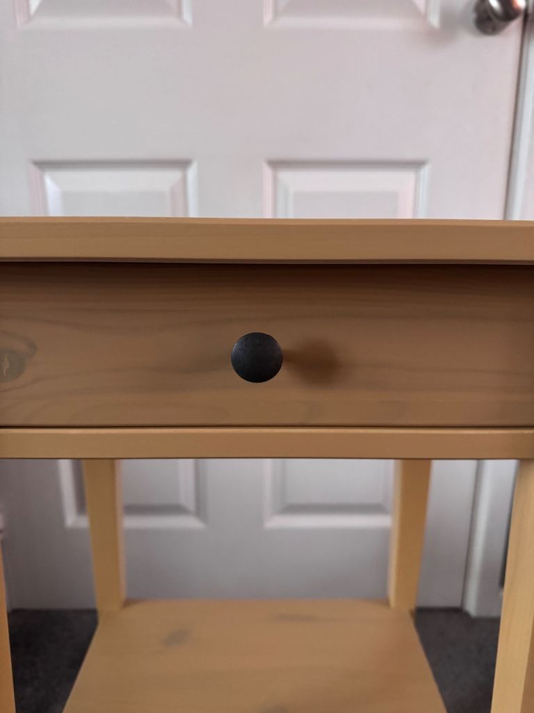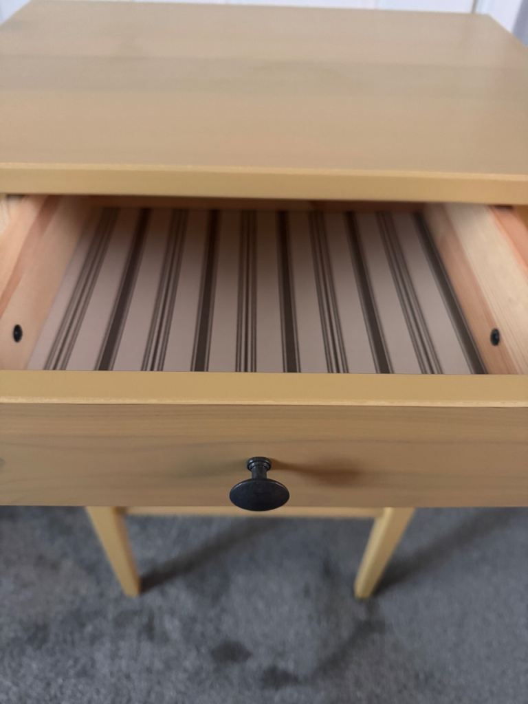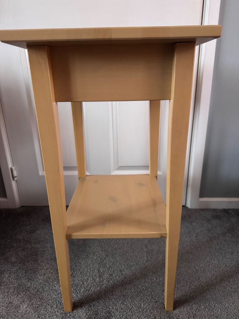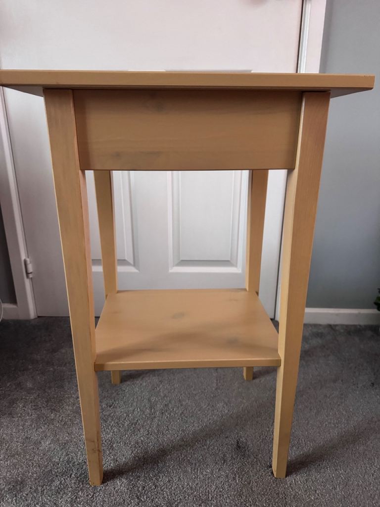 Posting for 5+ yearsBeige/ Wood bedside table/table with one drawer and shelf