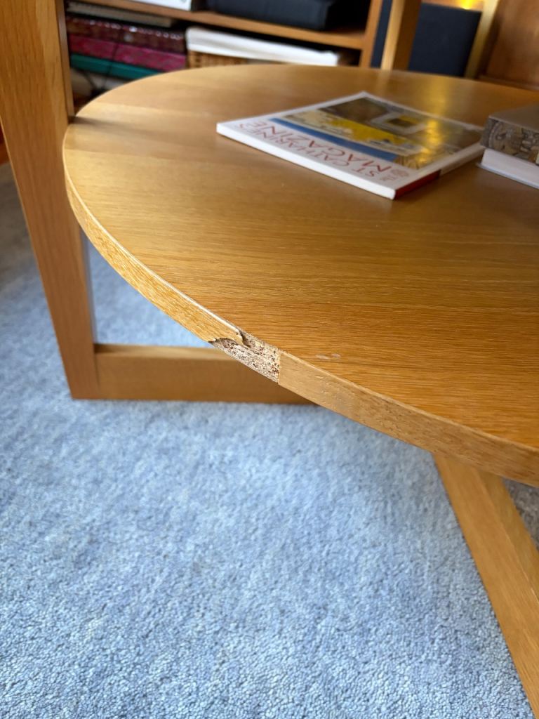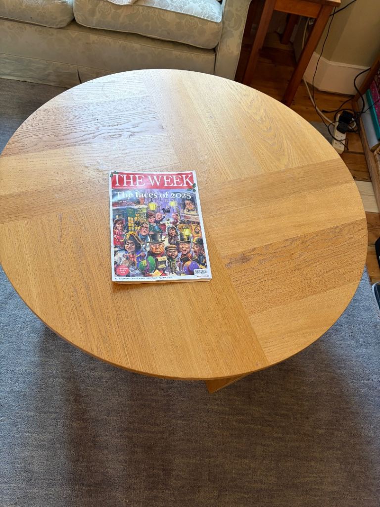 Lovely and practical table. A4 magazine for scale. Flaw on side shown