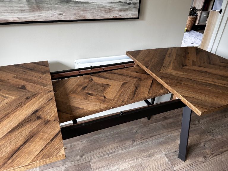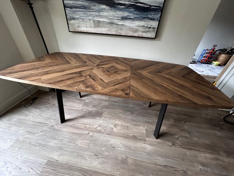 Excellent condition dining table from the Bronx range at Next Fully extendable with hidden piece underneath which you just unclip. Length 160cm and when extended 200cm Height 75cm
