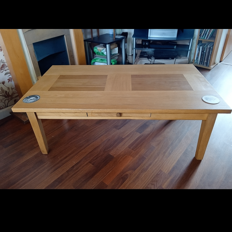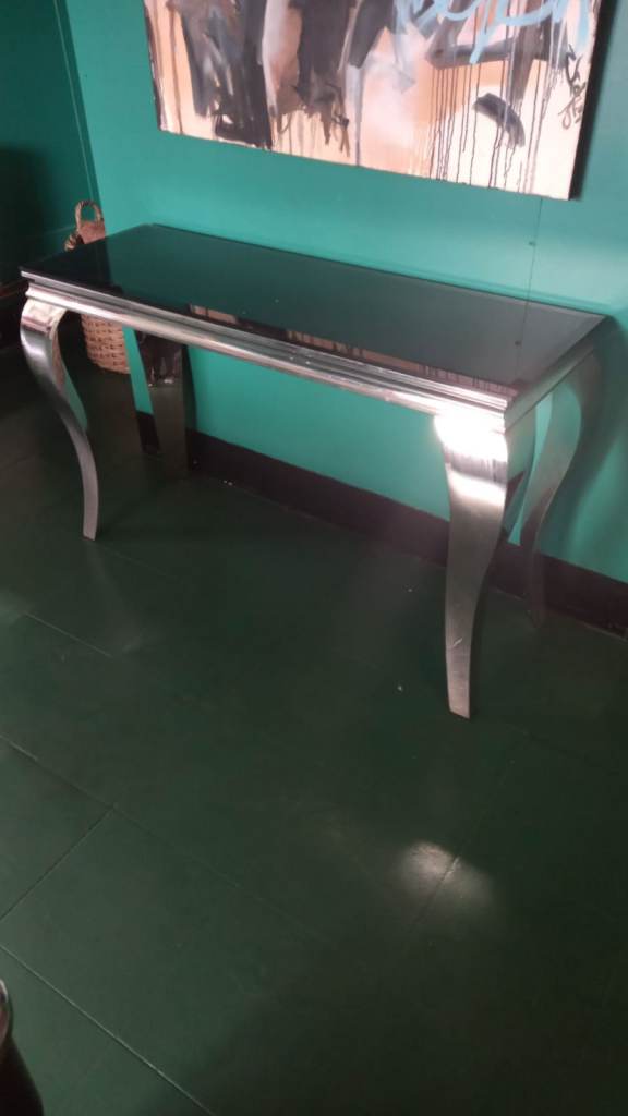Metal legs and glass top with soft stickers on connections