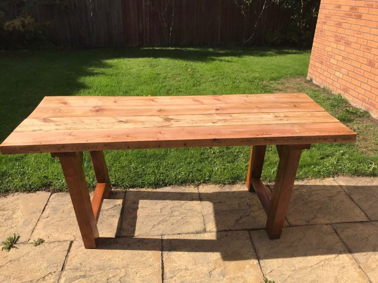 This is a hand crafted table made out of 200 year old barn wood rafters that was reclaimed and repurposed. It’s a quirky showpiece that’s beautifully handmade and will last for another 200 years at least.