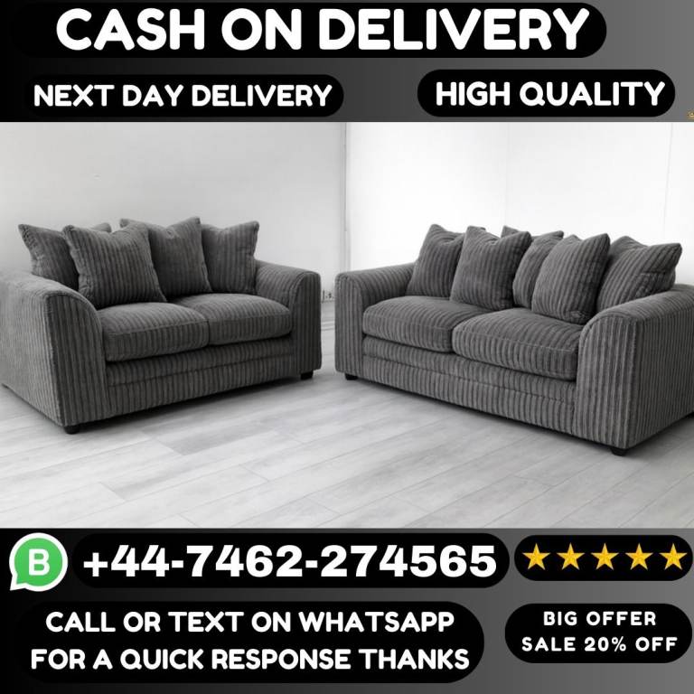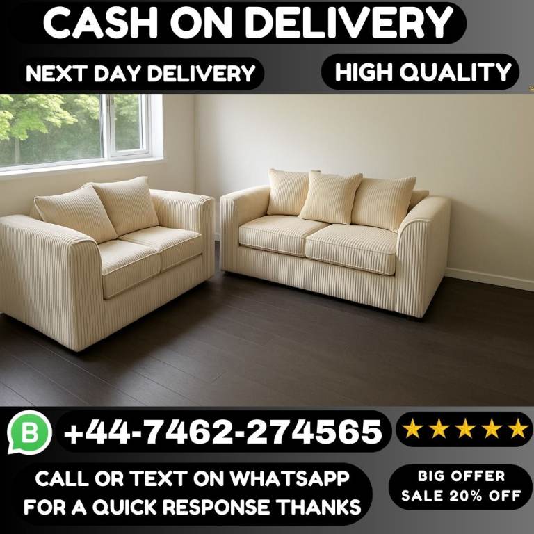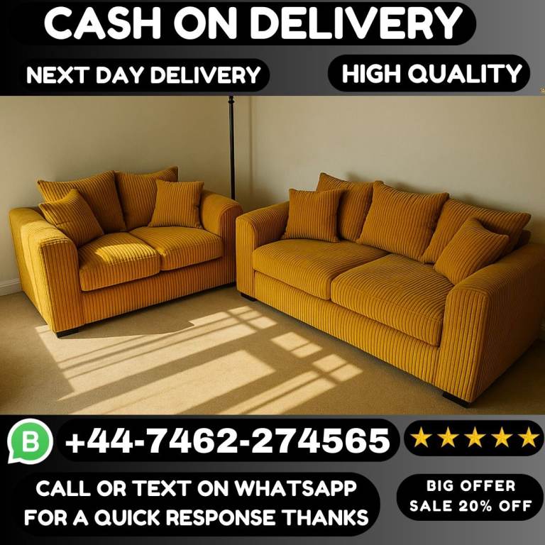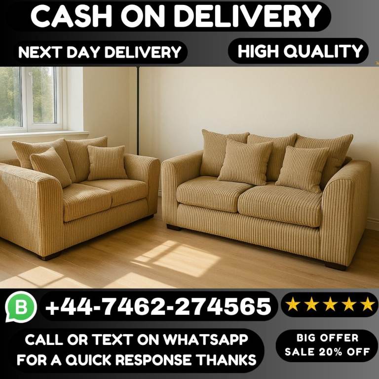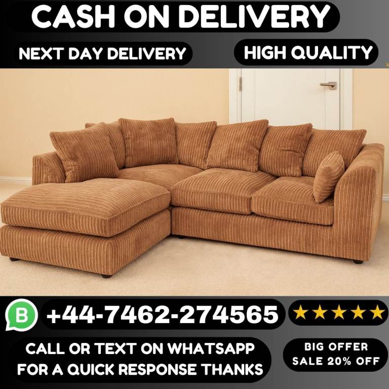 Posting for under a monthJumbo Cord Corner & 3+2 Sofas Sale – Cozy Comfort, Big Style!