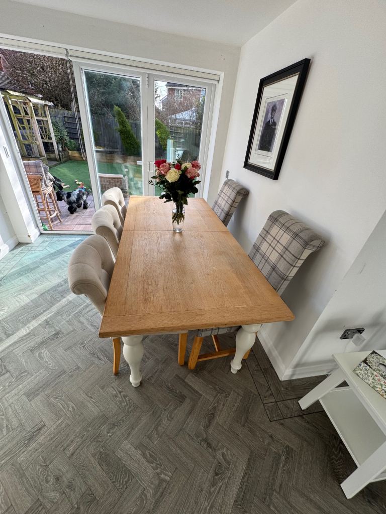 Sits 6/8 people comfortably, oak has recently been sanded - some damage to legs see images