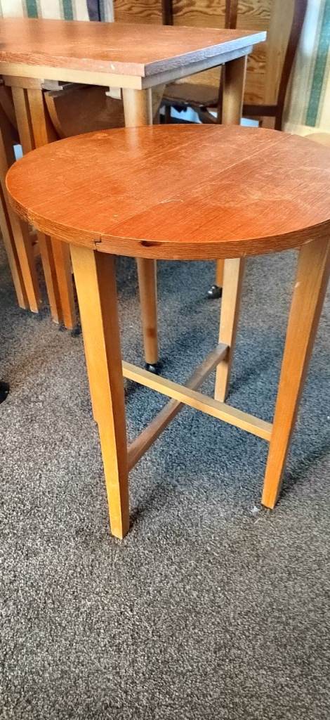 Set of 4 folding tables. Small and compact. 30 plus years old, need a bit of a clean up but still solid and perfect if you decided to update them in a modern way. Free to go. Pick up only.