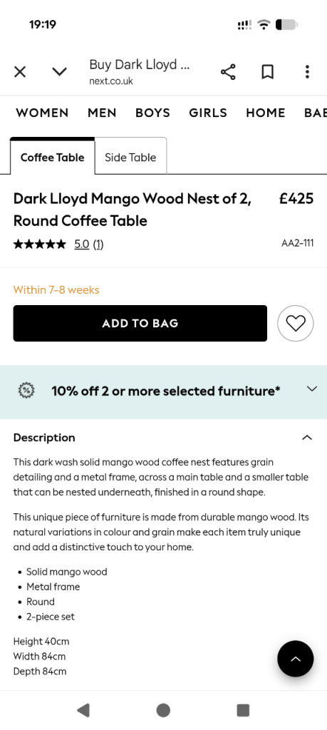 Buy Dark Lloyd Mango Wood Nest of 2, Round Coffee Table from the Next UK online shop https://share.google/geR7NCG2fQK9yDYxH
