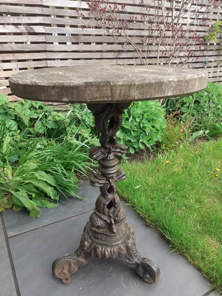 Vintage-style cast iron table base with removable wooden table top