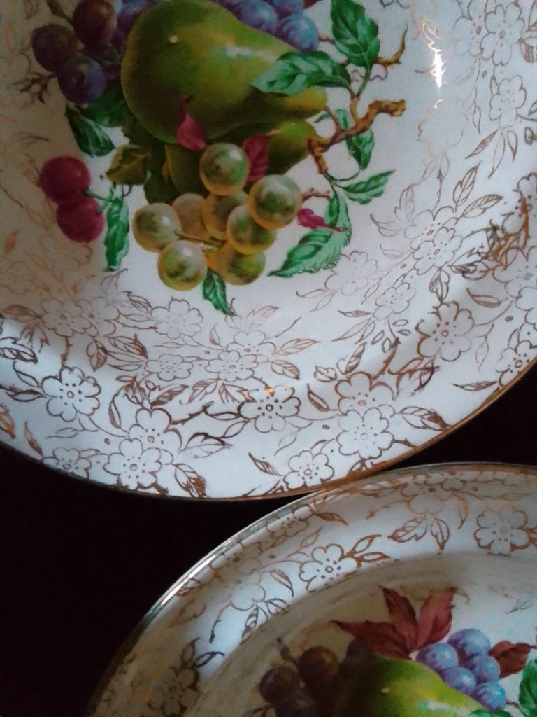 Lovely Victoria and Trentham potteries fruit bowl and six pudding bowls set dating from the late 1950s. Pear and grapes pattern. Never used. Any questions please ask. Collection only.