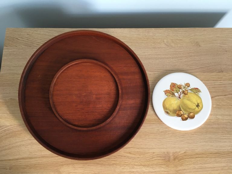 Vintage mid century teak cheese board with ceramic centre. Ideal for cheese and crackers.