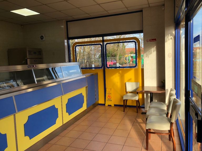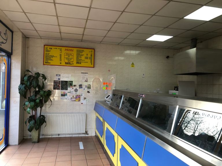 A Four pan counter frying range forming the centrepiece of the service area. Well designed out sales space for efficient customer service. Large preparation kitchen situated directly behind the sales area, leading to the level chipping and rumbling wet room, ideal for smooth and efficient workflow, potatoes storage room, staff WC, CCTV system, intruder alarm.