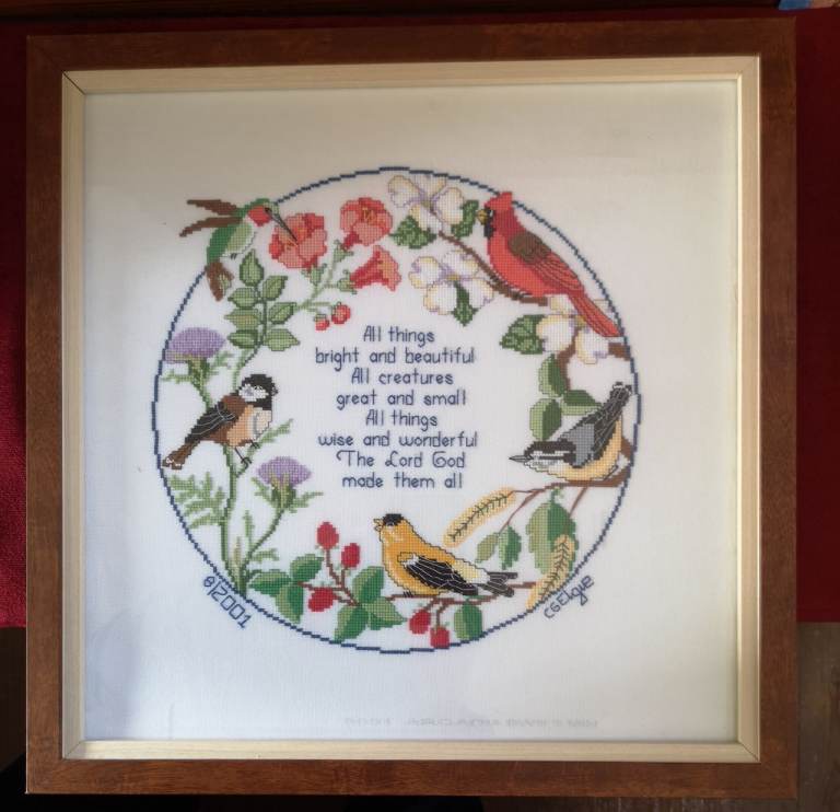 Sampler made 25 years ago in excellent condition and framed measurements 45cm x 45cm. Buyer collects.
