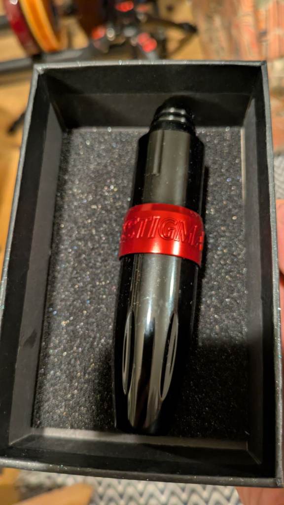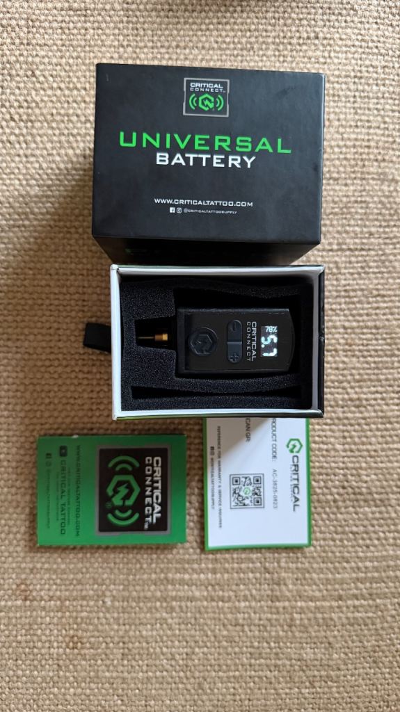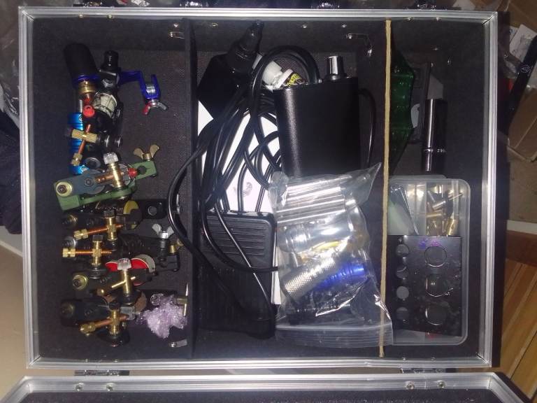 Good condition bishop rotary tattoo machine. Well looked after and runs great. Few minor marks on the bottom where it has been cleaned but nothing that effects performance. Includes critical rca battery with original boxes. The battery does not come with a charger but you can use any rca lead to charge it up. Lubricant has been opened but still has plenty left in it. Any more questions please ask no