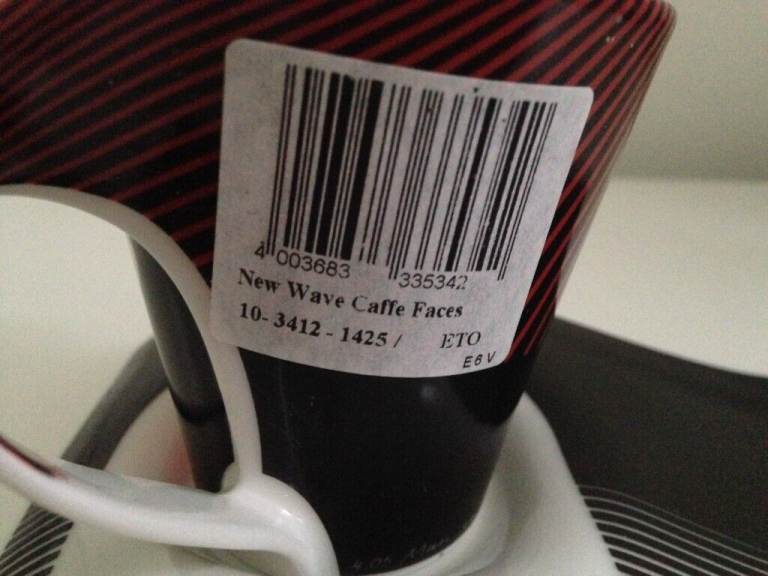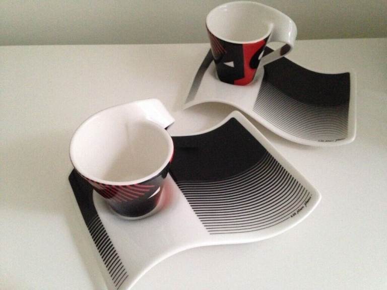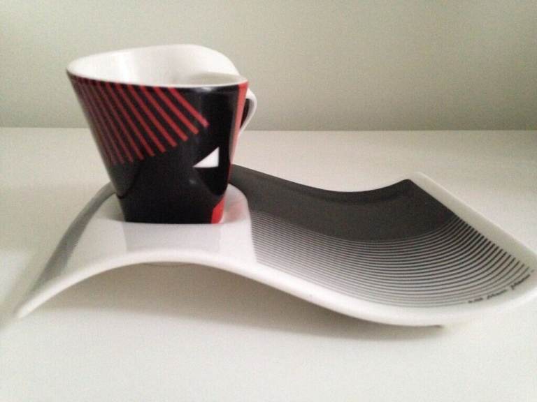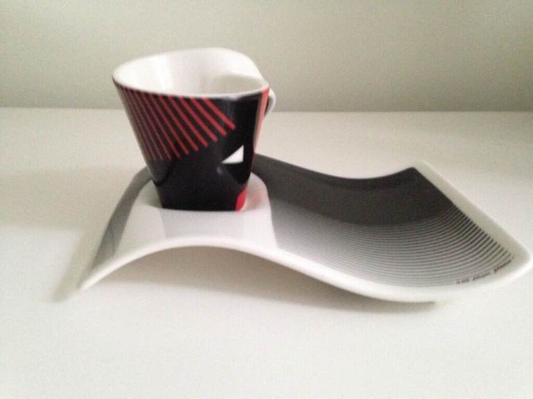 2 X Villeroy and Boch, New Wave Caffe ‘Faces Mocha espresso cup and saucer, NEW.Collectable item from 2005, a first Coloured New Wave Series draft Marc Manu artist!