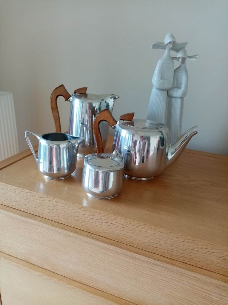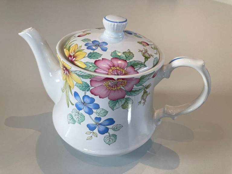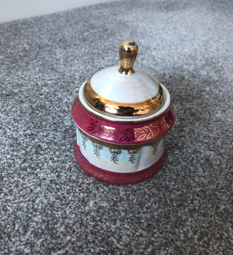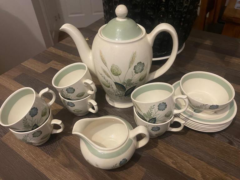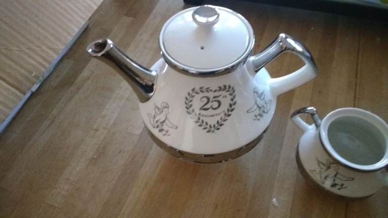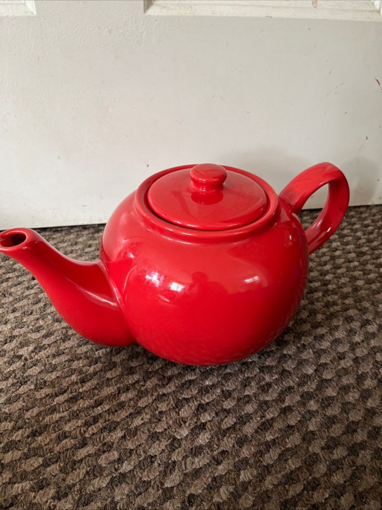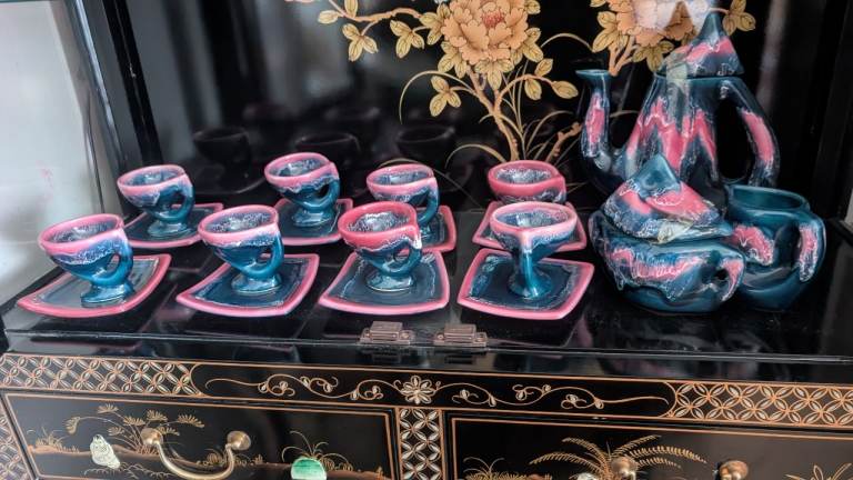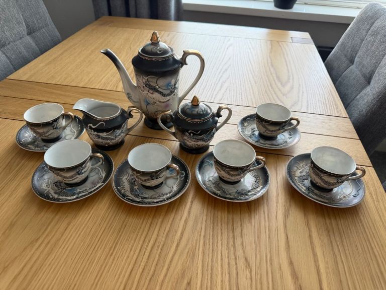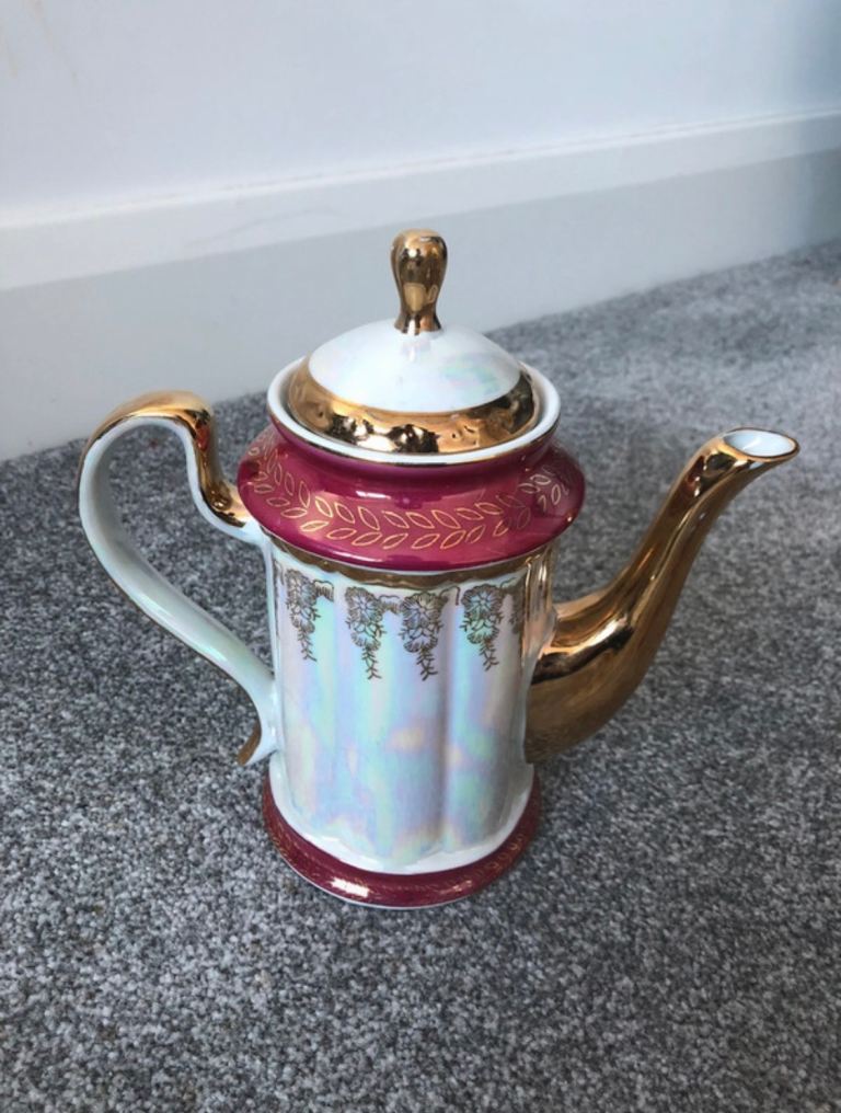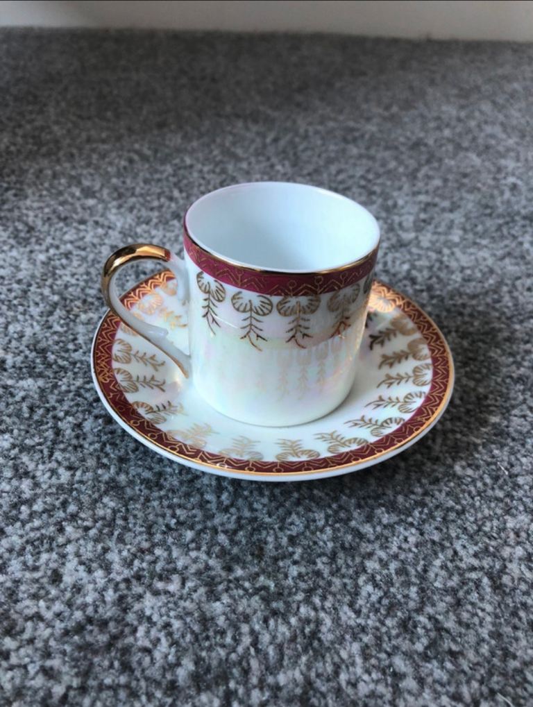 Fancy 15 piece tea set in gold, white & burgundy. Has yet to used.