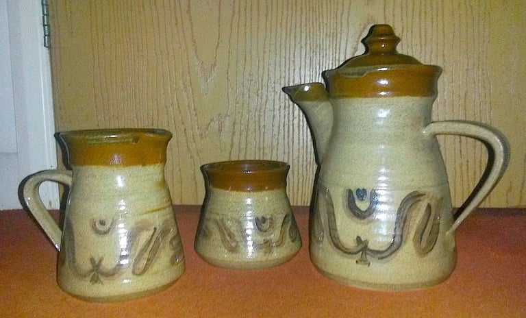 Set consisting of pot, milk jug and sugar jug.