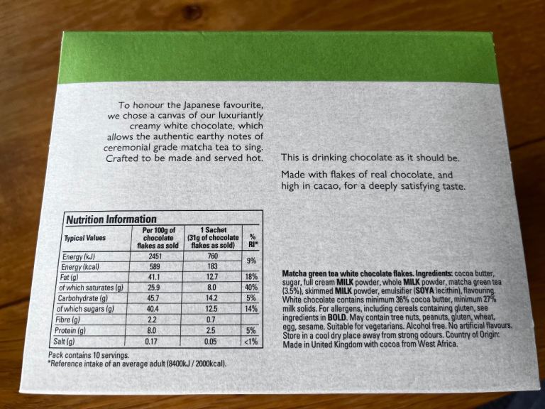 Matcha Hot Chocolate Sachets – Limited Edition for the Velvetiser Hotel chocolat