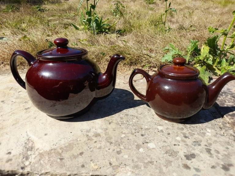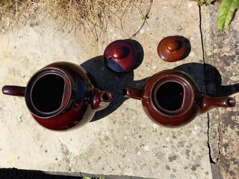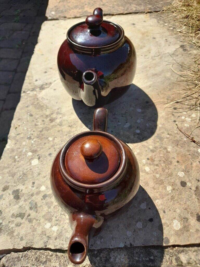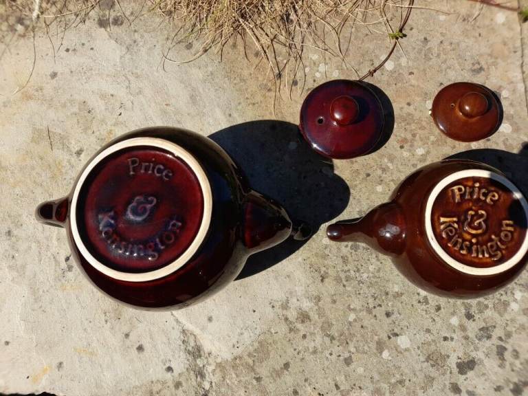 A pair of both small & large Price Kensington brown ceramic tea pots in excellent condition, no chips or cracks. Large one is 6 inches high & small one is 4 inches high. Postage is available for these items.