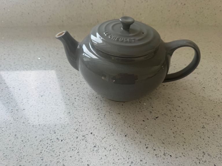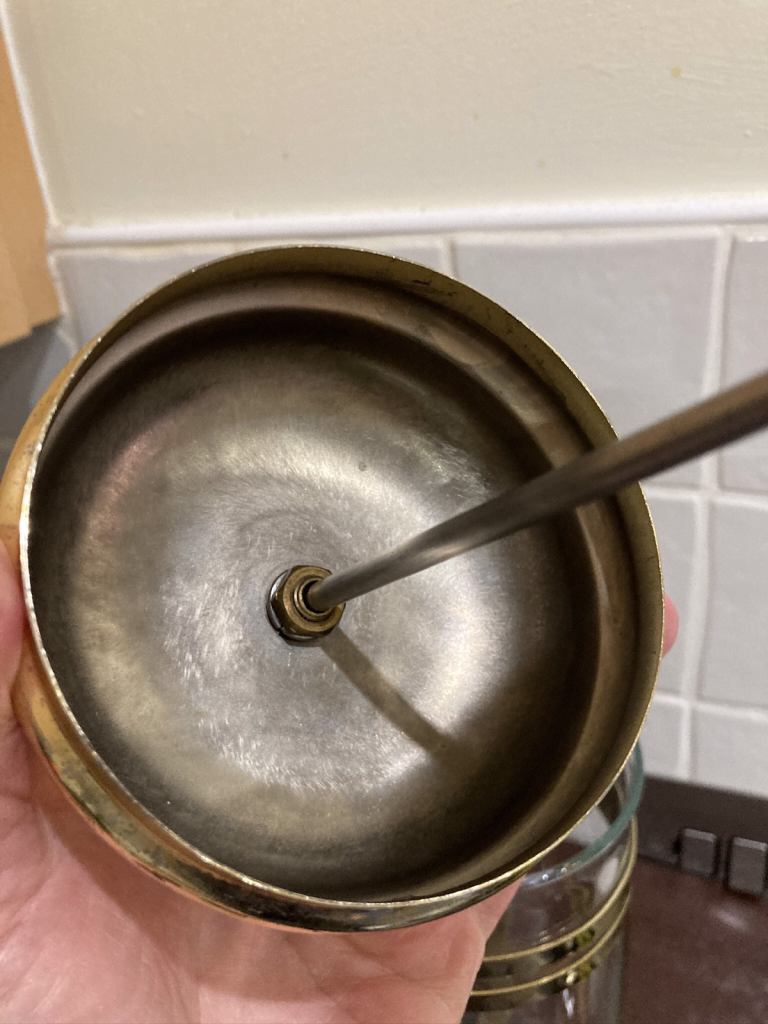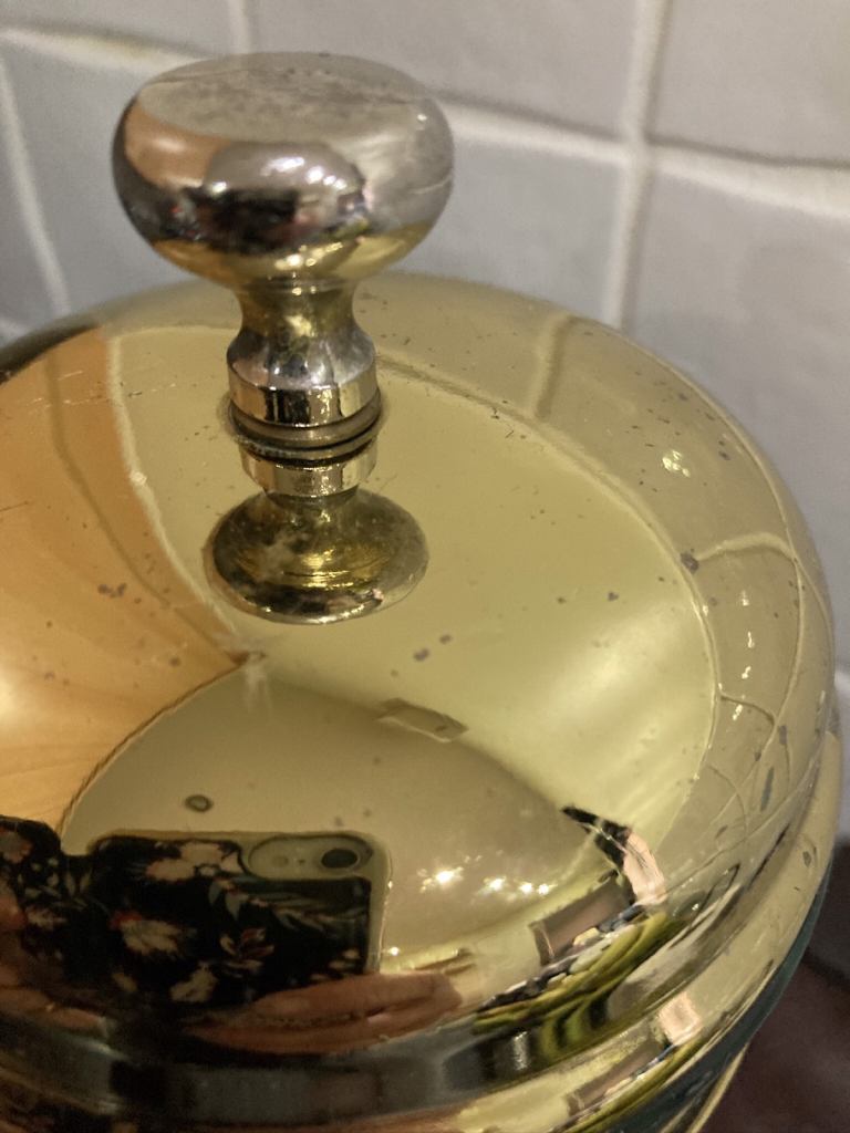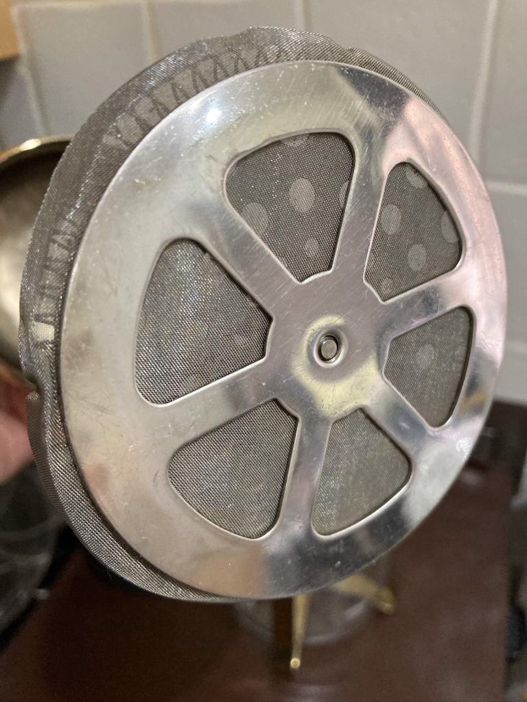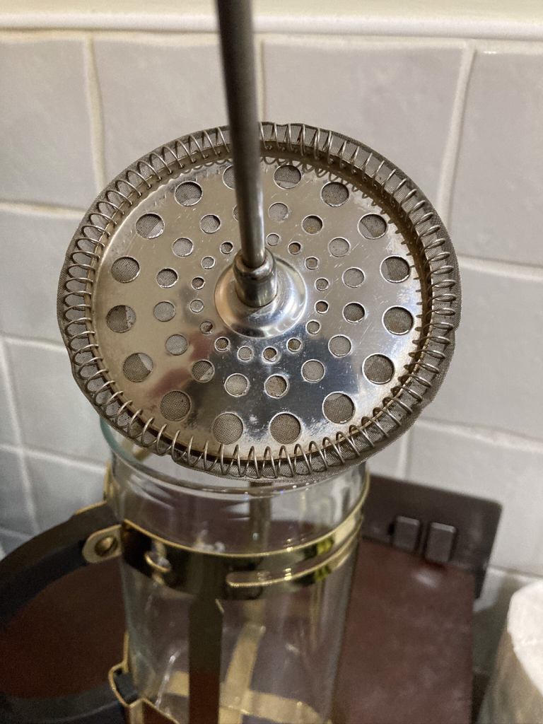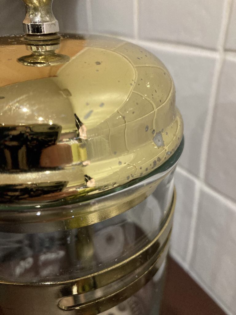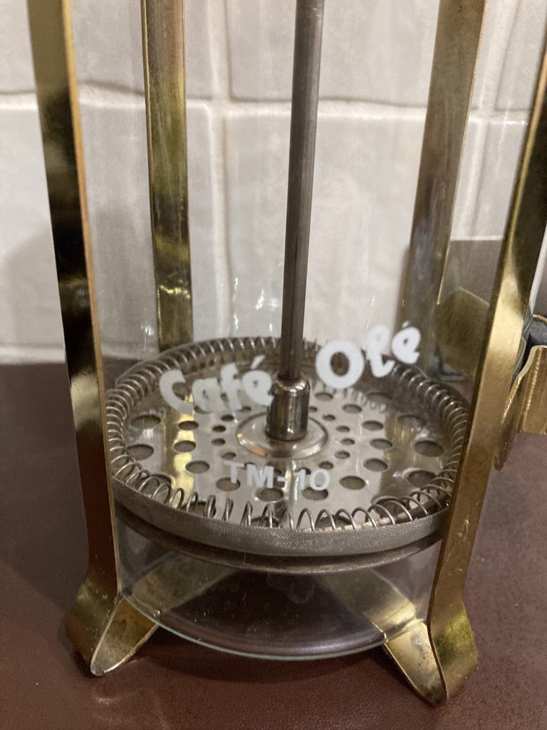 Gold tone and black large cafetière. In overall good used condition, please refer to the photos.
