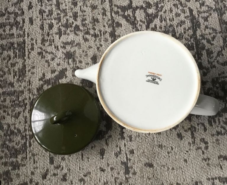 Here I have a lovely vintage Swinnerton’s Ironside Teapot in their chic “Harvest Fruit” design, as per pics. The lid is intact, in a deep olive green, and it is in excellent used condition with no cracks, although has slight age-related crackling to glaze (pic.4), a tiny chip on internal rim (pic.5) which cannot be seen when lid is on anyway, and minor tea-stains internally (pic.6). This is a pretty little teapot (holds c.1 pint ), is a collectible, but can be used for purpose. It comes from a pet/smoke-free home, and can be picked-up from CH48. Any questions, please do not hesitate to ask. Thank you.