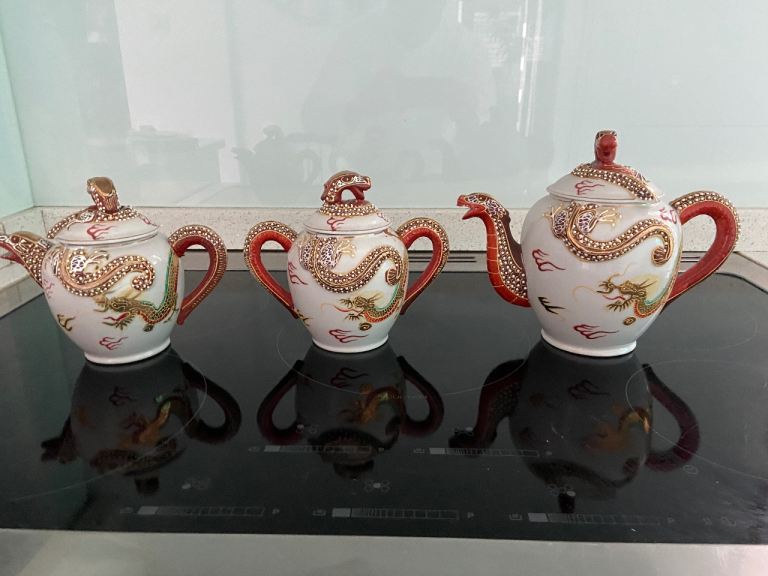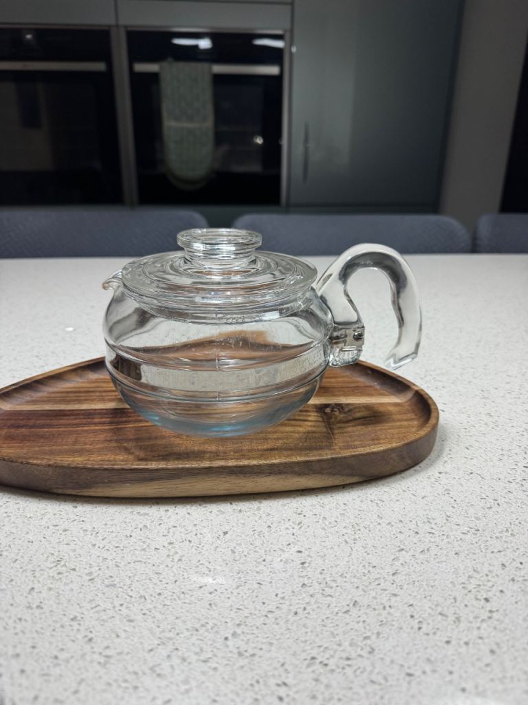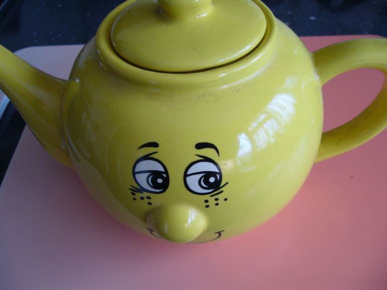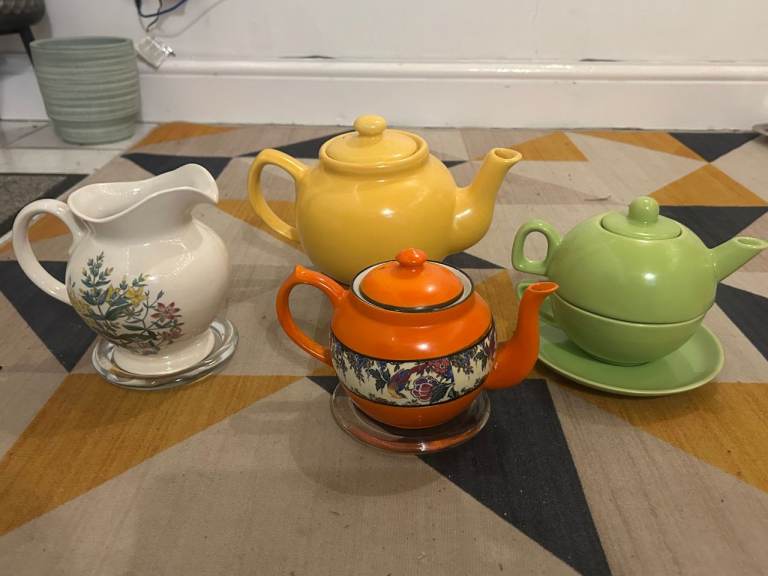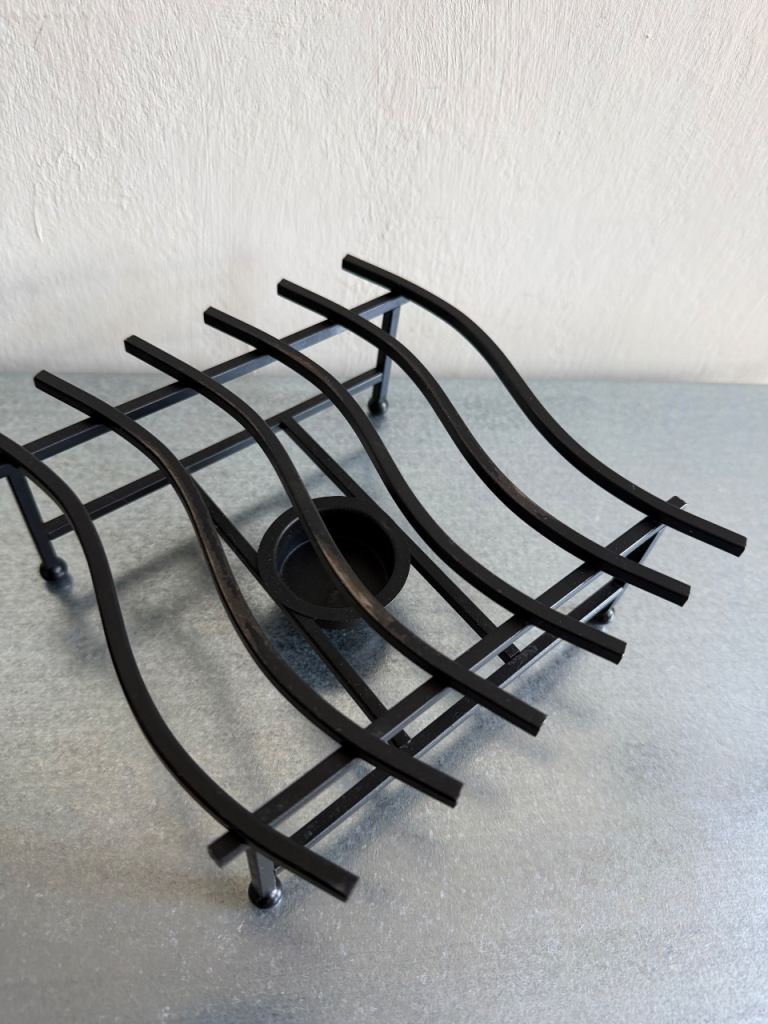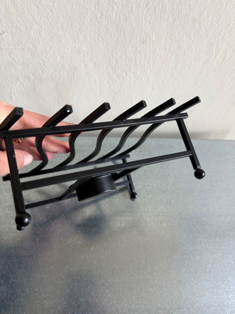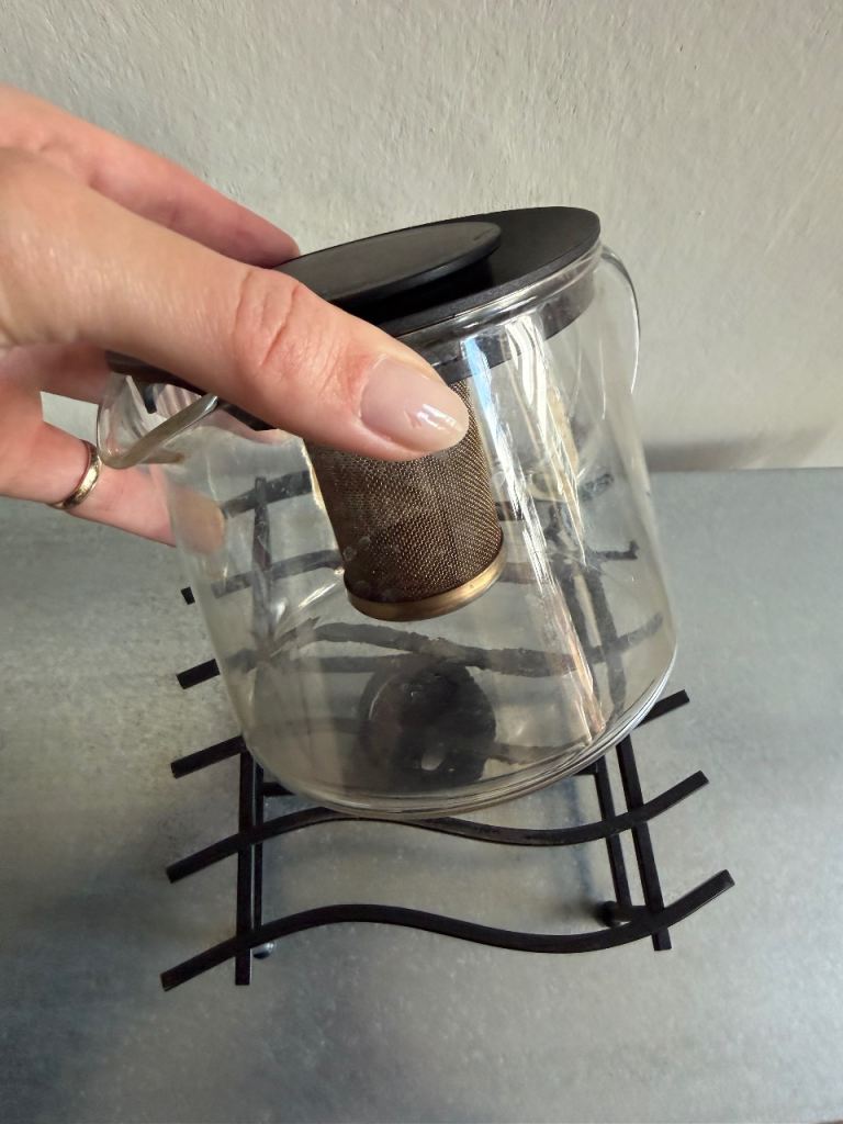 Teapot and Warmer Stand – Black Metal, Good Condition