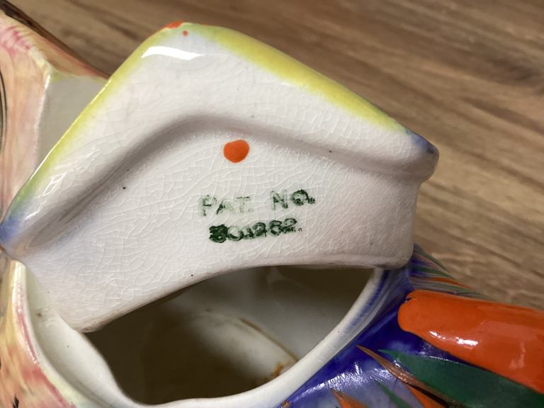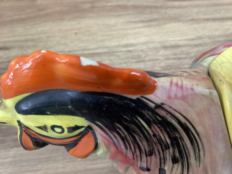 Slight piece of coloured glaze missing on head as shown in photo.