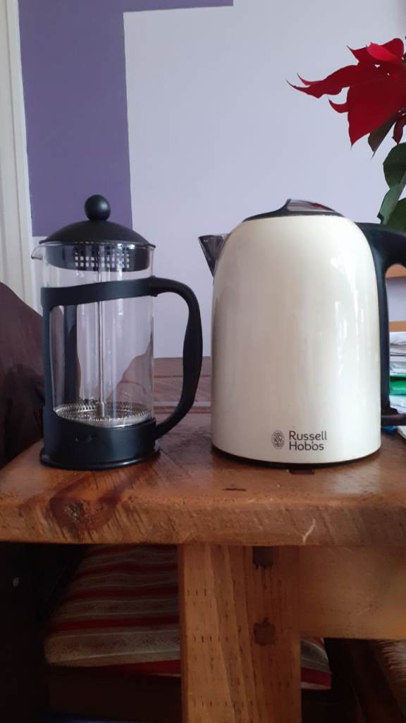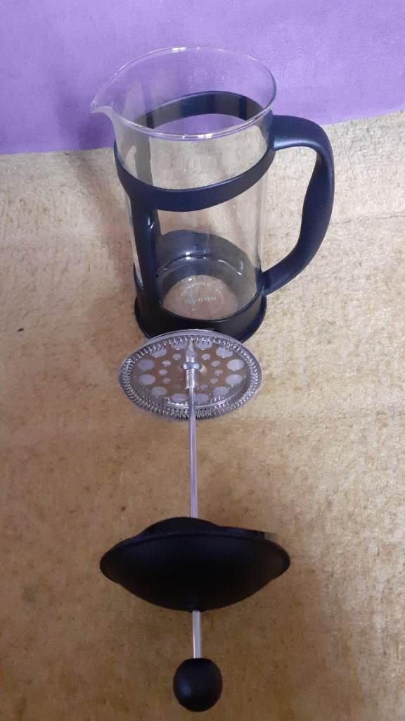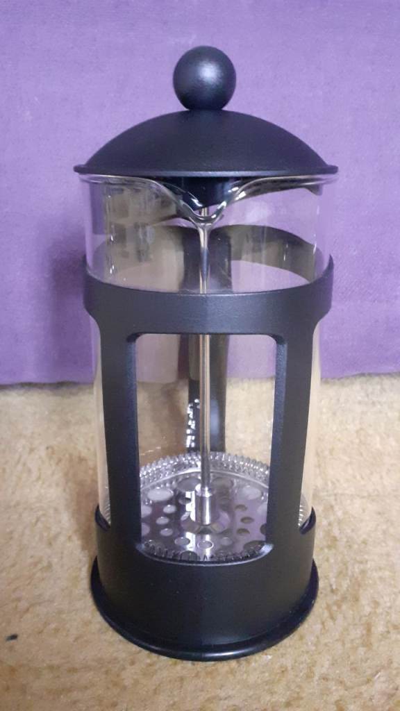 Unused present so just been on a kitchen shelf. The make is Habitat as per picture of base and it looks like it is the 1000ml (1 litre) capacity size. It is a Glass Jug and the Frame and Lid are Black Plastic. It has a removable plunger coffee filter and safety lid to help prevent spills. From a no pets and non smoking household. Cash Payment on collection from Roundhay Leeds LS81RP.