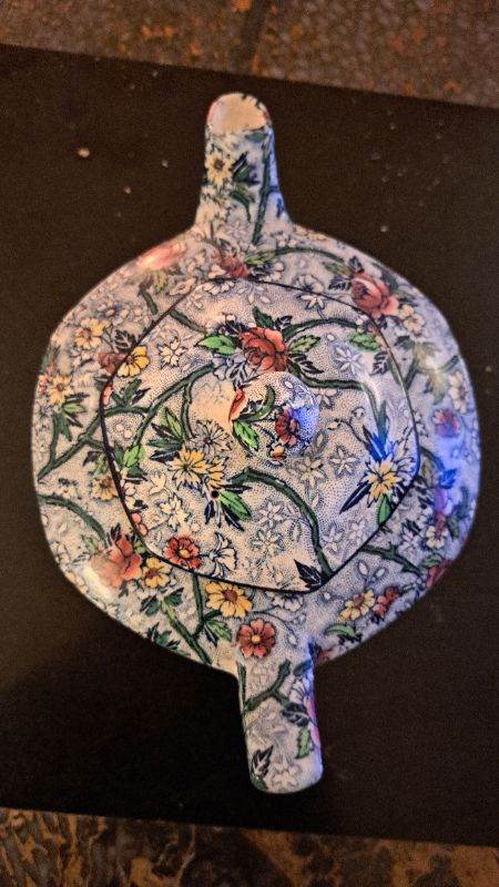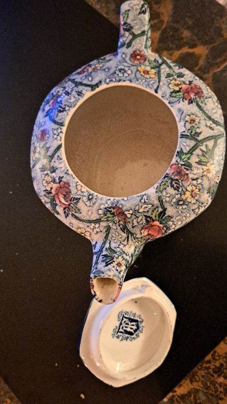 Unusual blue and white tea pot .collectibles. in excellent condition