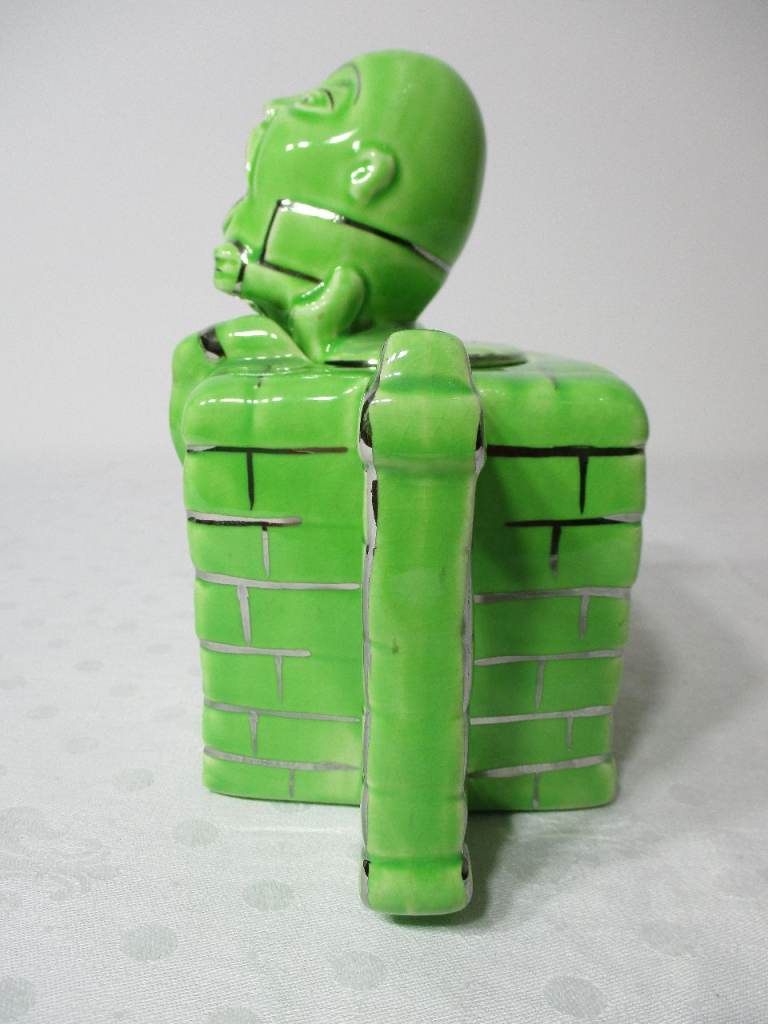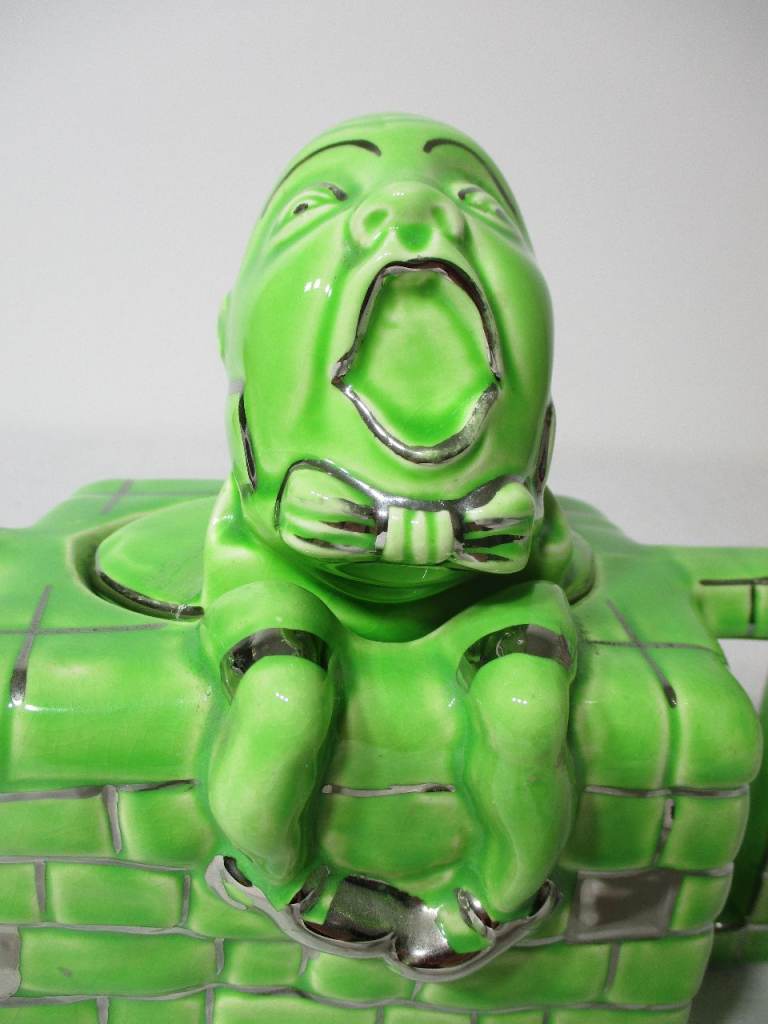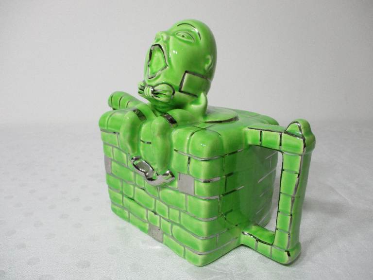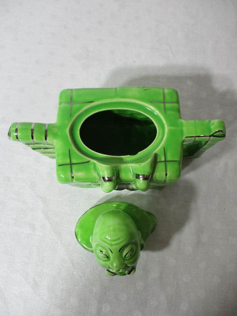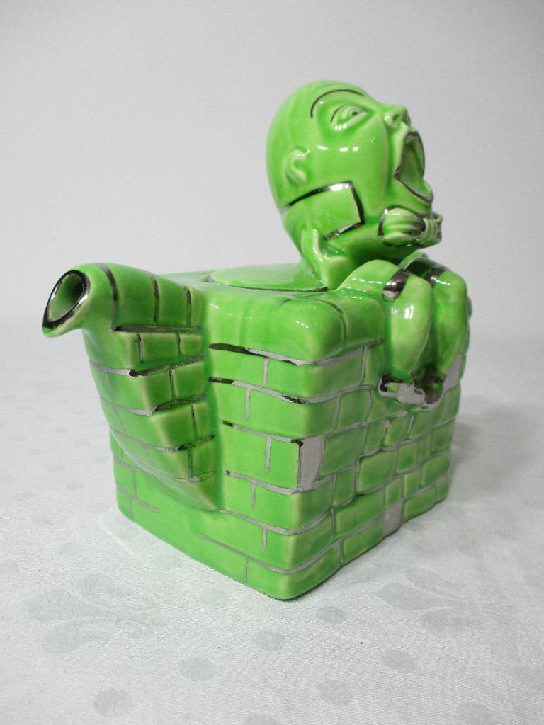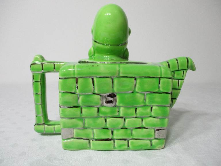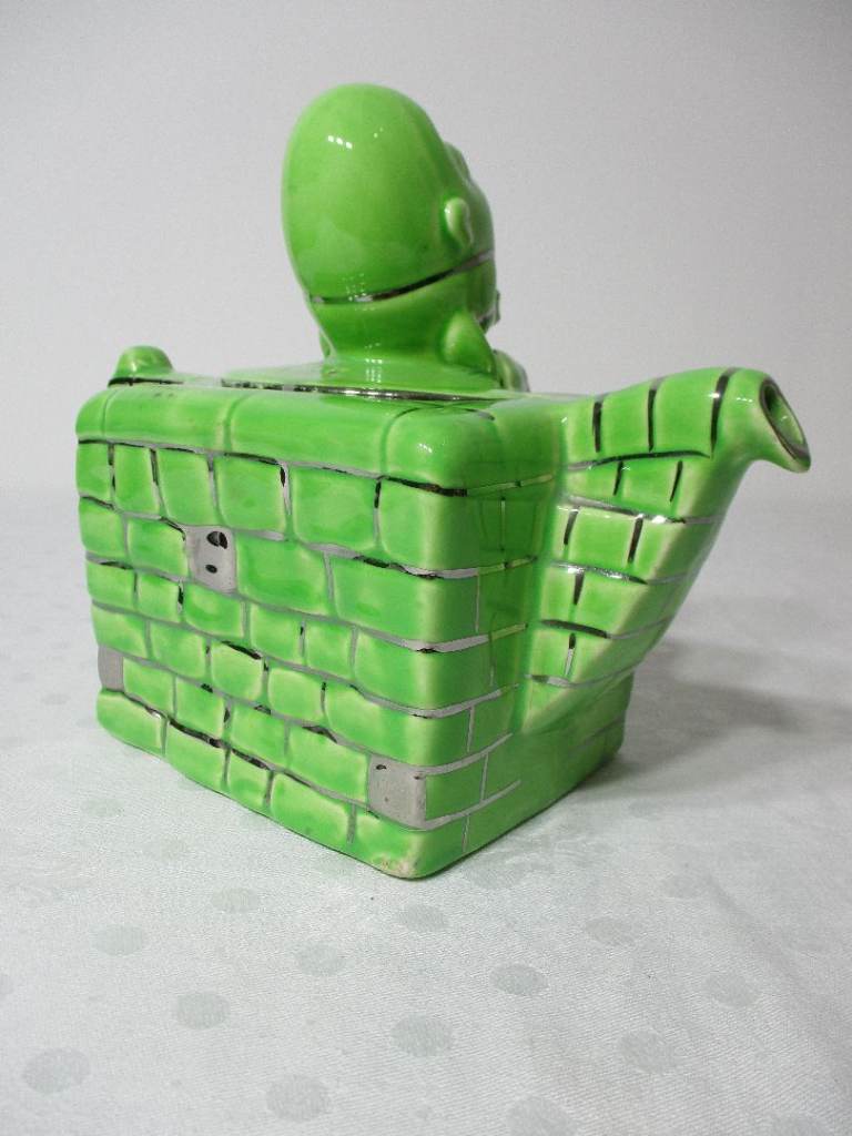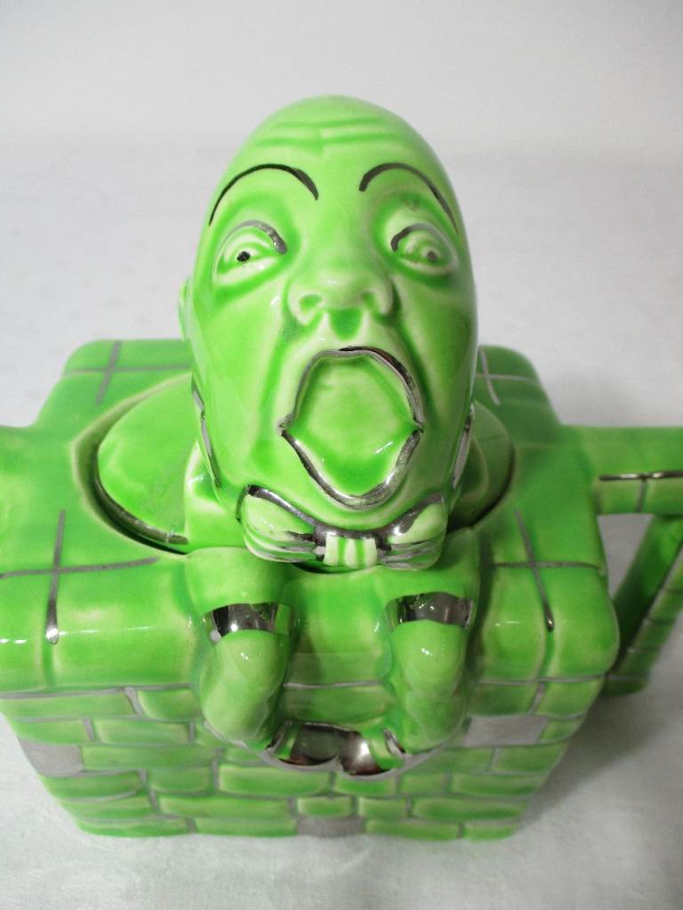 Vintage (1930s) Lingard Green/Silver Humpty Dumpty Novelty Teapot
