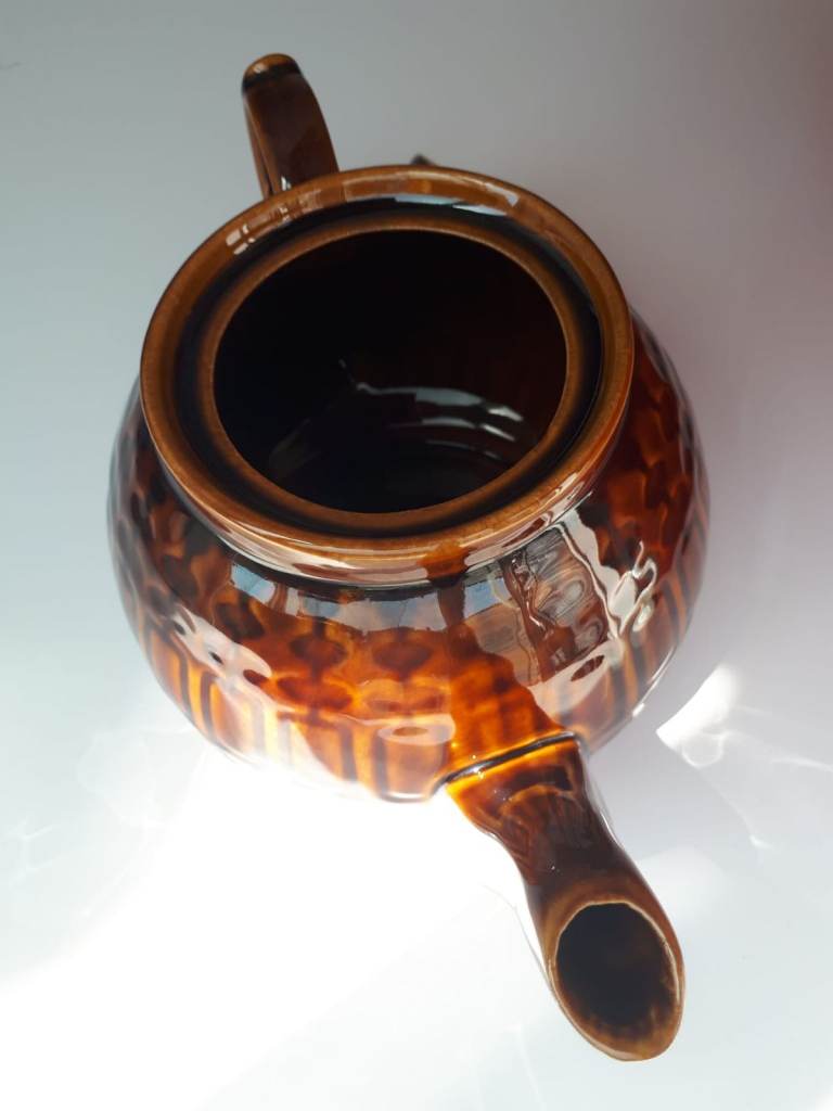 Vintage Polish Pruszkow Pottery Ceramic Brown Patterned Treacle Glaze Teapot tekanna Aztec pattern