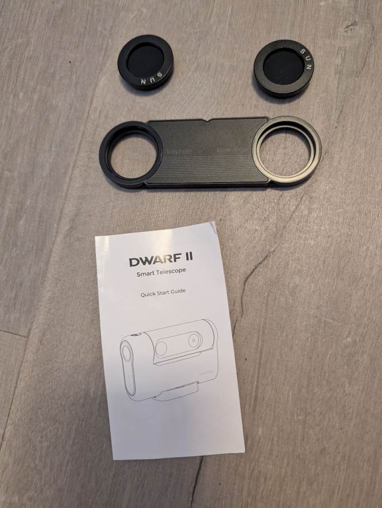 Dwarf 2 telescope, comes with carry case, 2 X solar filters and tripod.