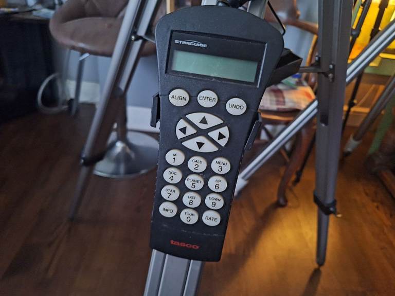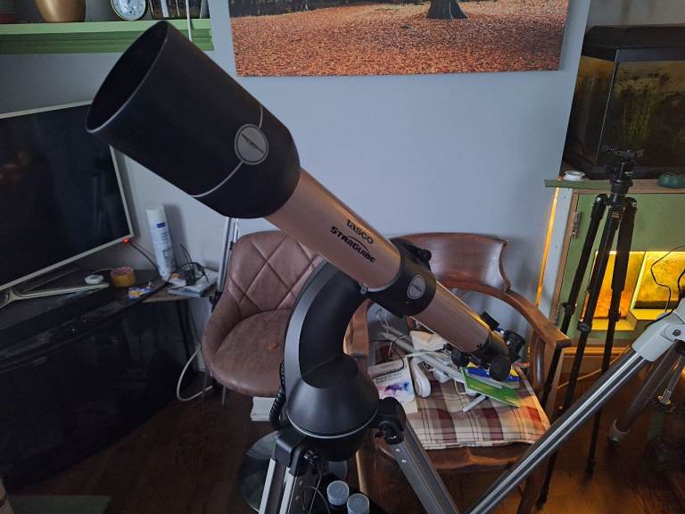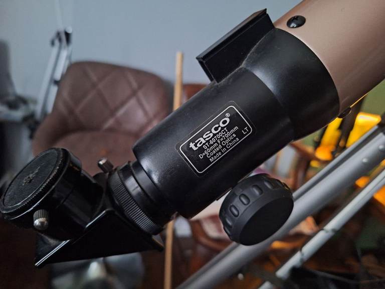 Tasco starguide 60mm go to telescope. Comes with 20mm and 4mm eyepiece and a moon filter. Comes with star diagonal also. Its a really good telescope for beginners as it finds the targets for you. Great for lunar and planets viewing. I can deliver in weston if you can't collect yourself.