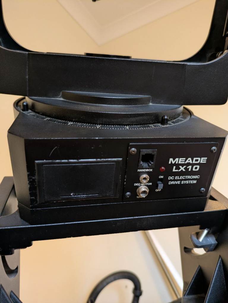 Meade LX10 telescope with DC electronic drive system for celestial tracking.