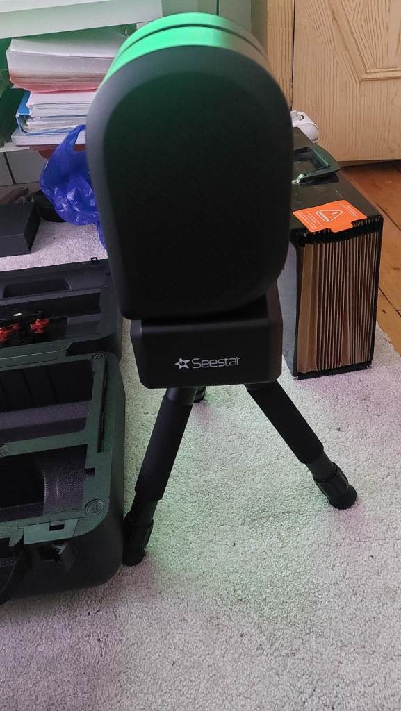For sale: My barely used ZWO Seestar S50 – the perfect portable smart telescope for effortless astrophotography! This all-in-one wonder lets anyone capture stunning images of galaxies, nebulae, star clusters, the Moon, and Sun in minutes. No complex setup—just connect to the intuitive Seestar app (iOS/Android), select a target, and it auto-GoTo, tracks, focuses, and live-stacks pro-level results right on your phone.Key highlights:50mm apochromatic triplet lens + Sony IMX462 sensor for sharp, vibrant shots