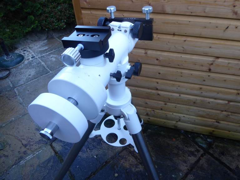 I had my 150 mm Refractor up on the mount with a focal length of 1200mm f8 over 12.5kg and it worked fine. I would say even my old 8" Reflector works well too. To buy today at the current price of all items, the ADM saddle and extra counter - weights, would cost shy of £600. All parts and the mount are brand new, no rust, chipped paint and all in first class working order. My reason for sale is that I have purchased a much larger mount for a new project and no longer require this mount and tripod.