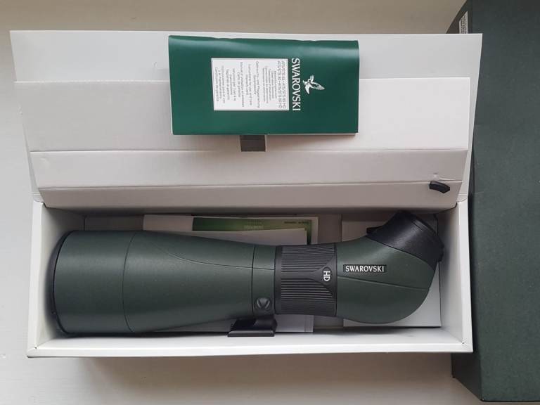 Swarovski ATS 80 HD spotting scope with 30x SW wide-angle eyepiece, both boxed. The scope is hardly used and in mint condition. There are no marks on the optics, no fungus on the optics and no condensation on the optics, they are crystal clear, like new, and comes with both lens covers. This lightweight scope gives extremely bright, sharp, crystal-clear images with it having the HD glass. It has been very well looked after in a smoke-free and pet-free home. I can post using Royal Mail Special Delivery if needed.