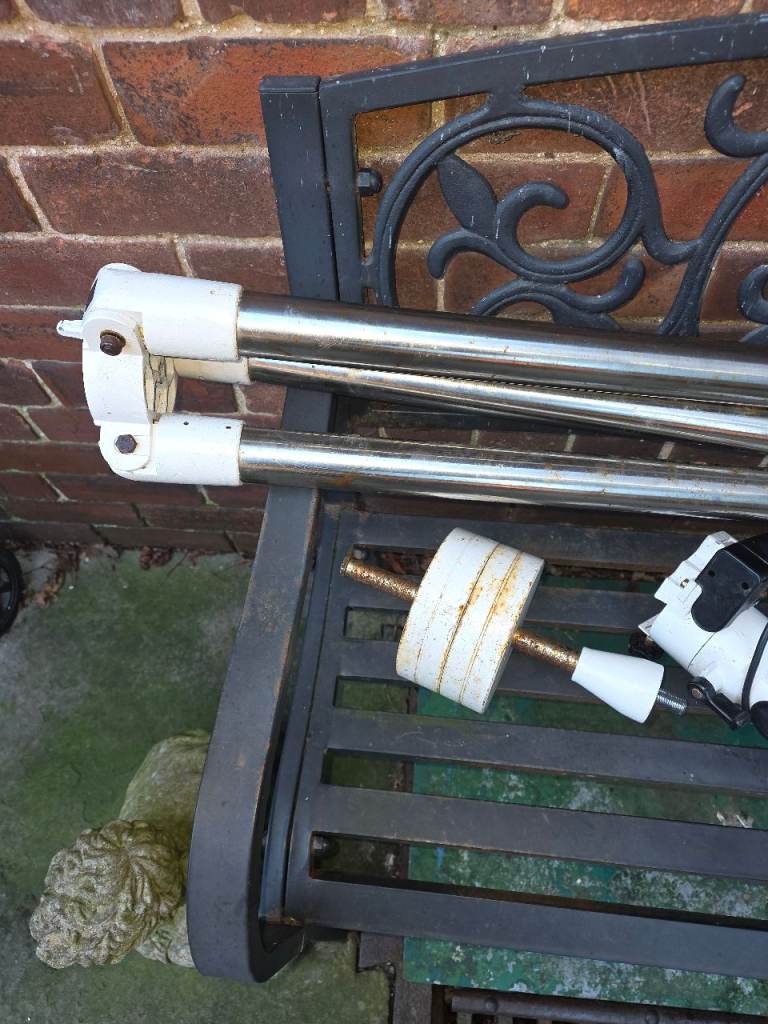 Bought this around 4 years ago been left in my shed don't no how to put together never got around to it when Bought told everything works great lens covers on just got service rust project for someone nose whot he.s doing says it was 1200 new open to overs all there i was told please check photos thanks for looking hope gets cleaned up goes good hands
